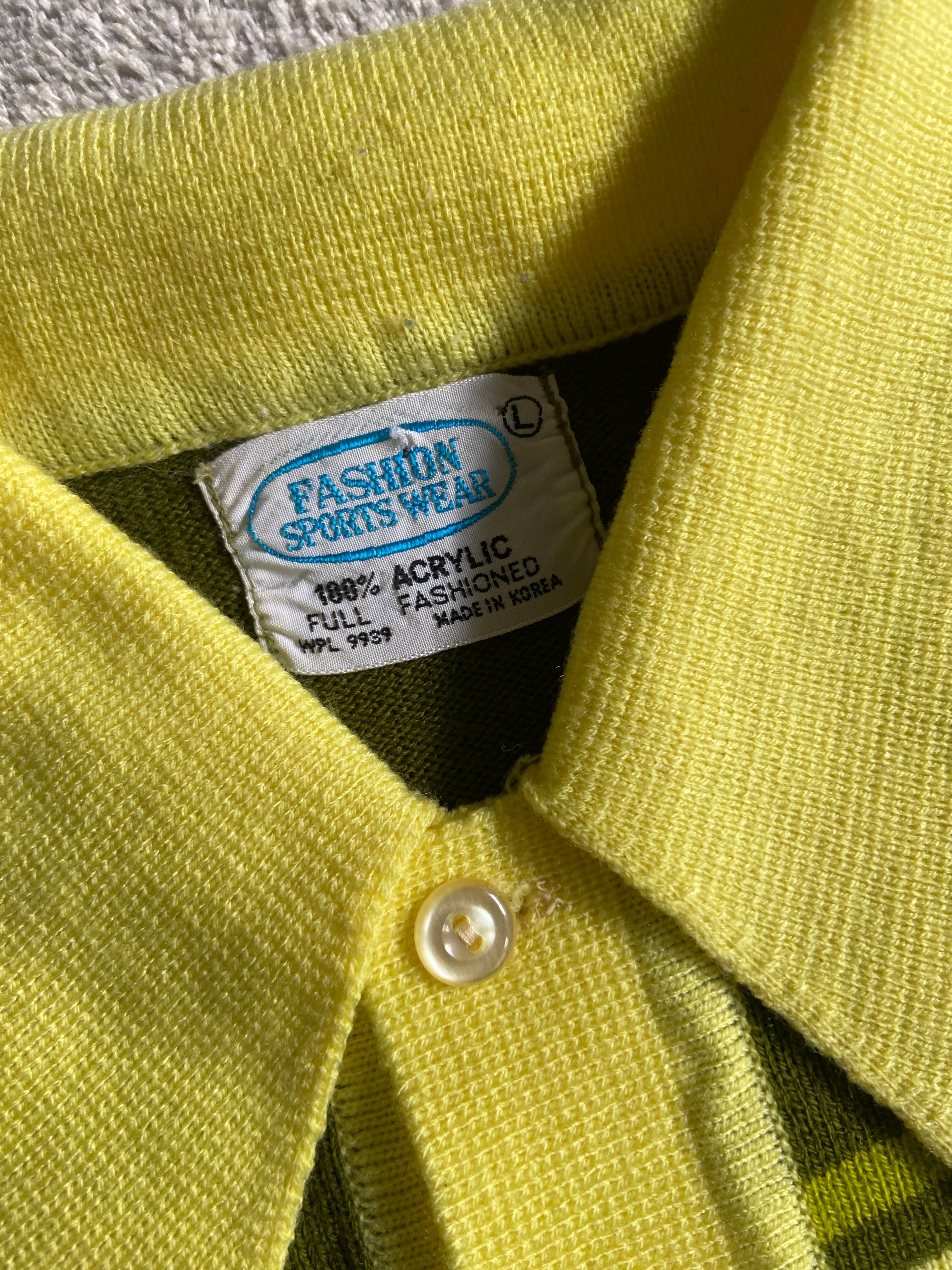 1970s Retro Fashion Sport Wear Knit Polo Shirt L F662