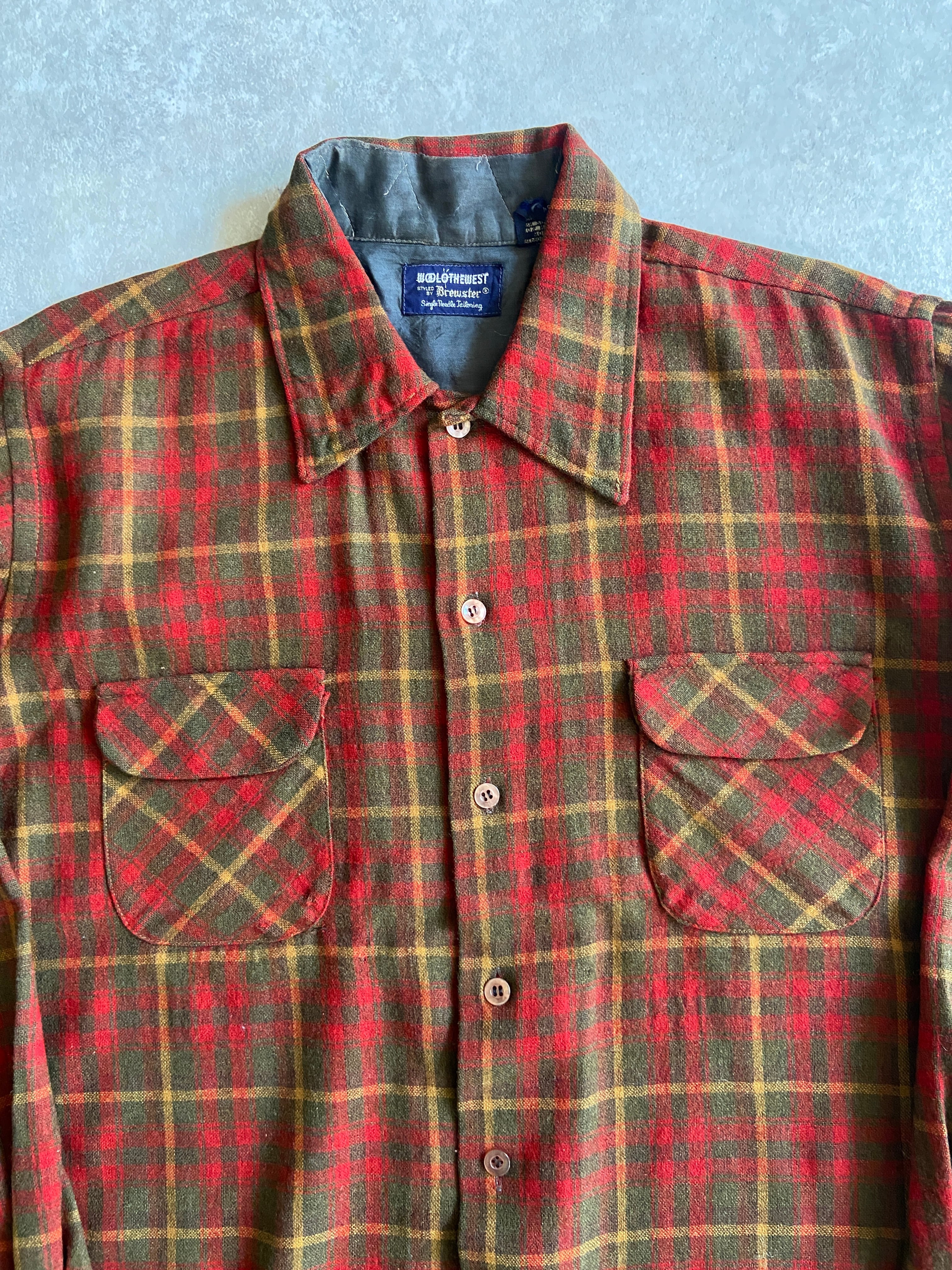 1970s Brewster Wool Check Shirt XL