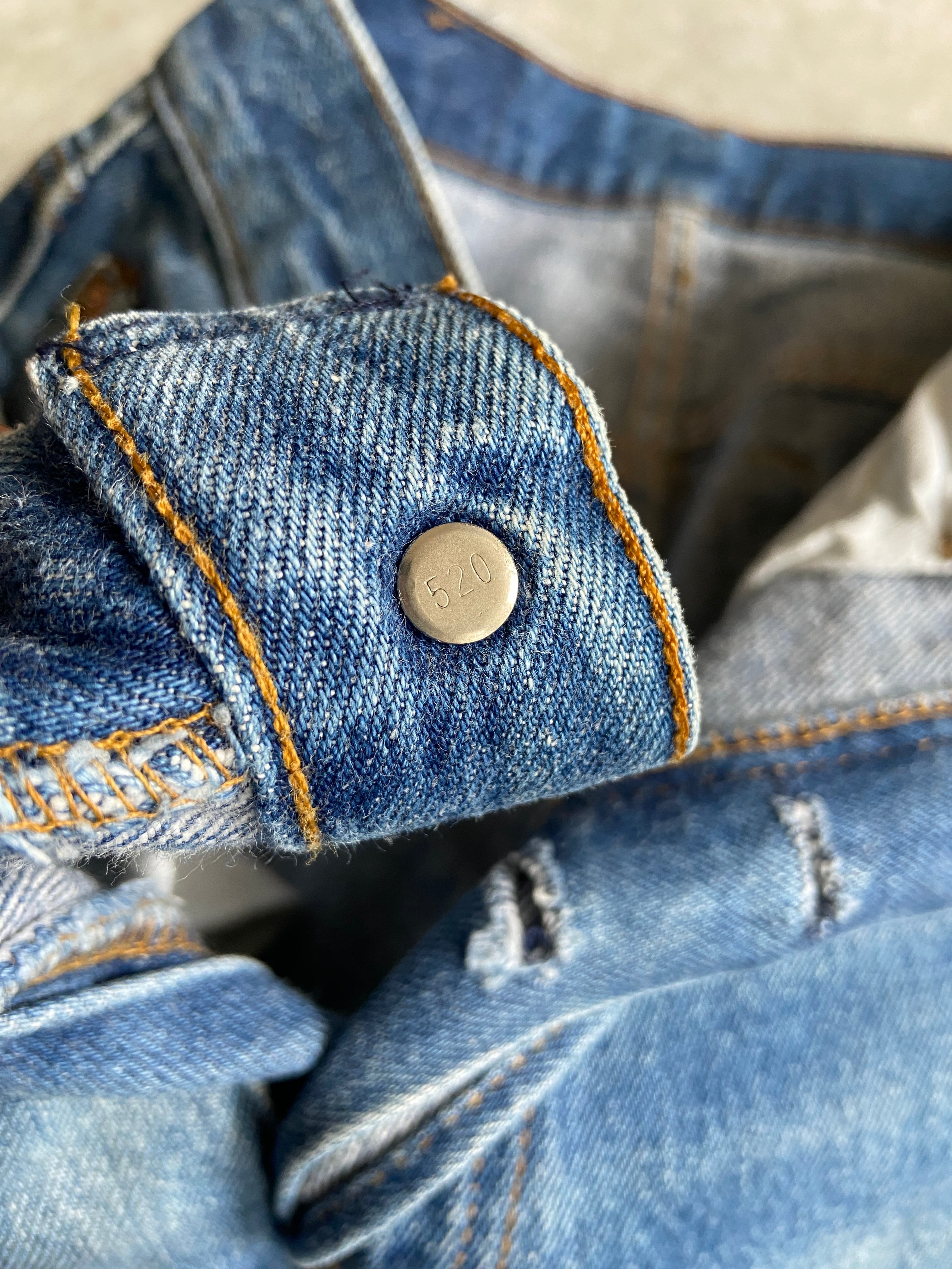 色落ちがとても綺麗な一本で、ボタン裏刻印は520です。