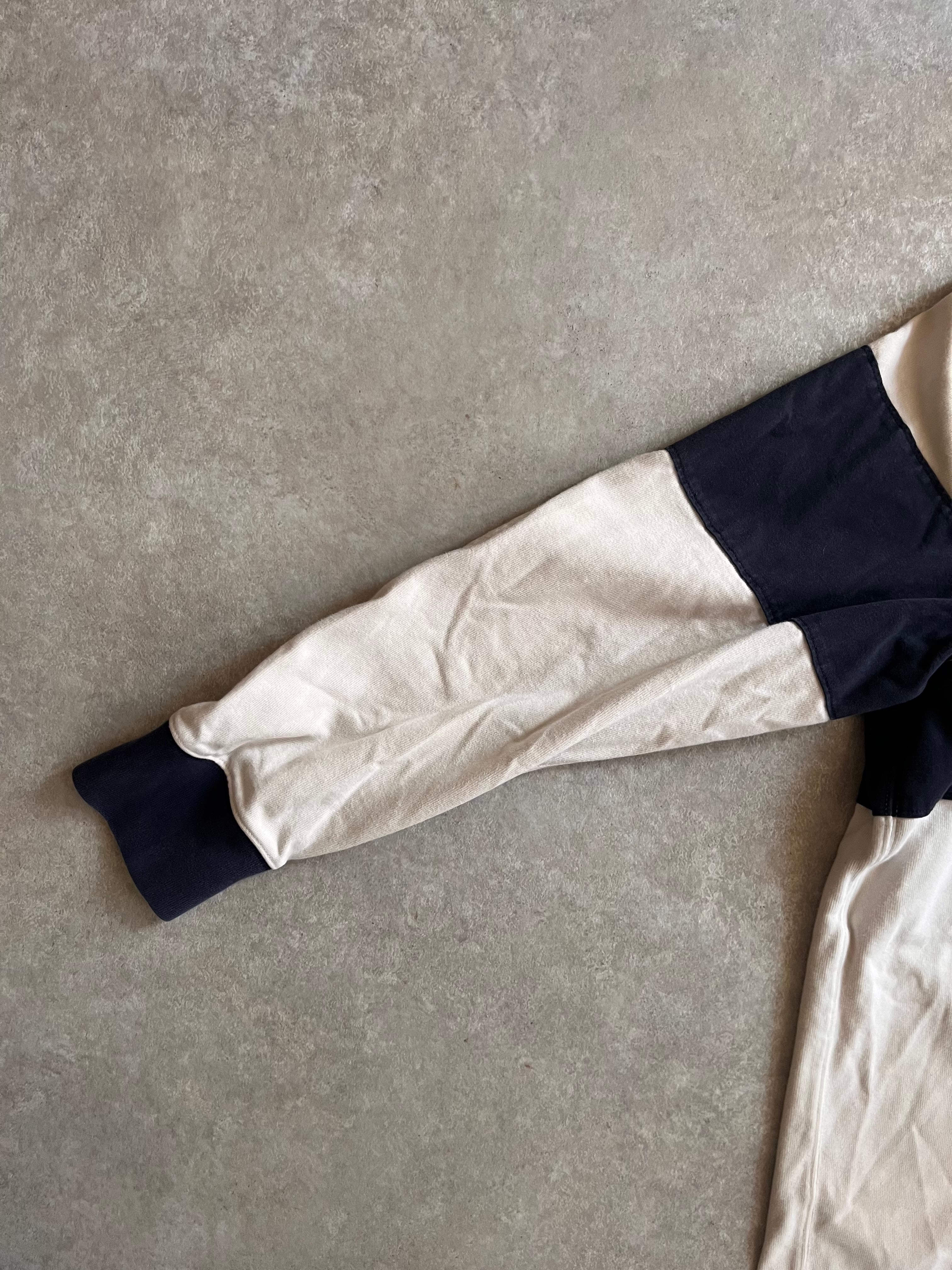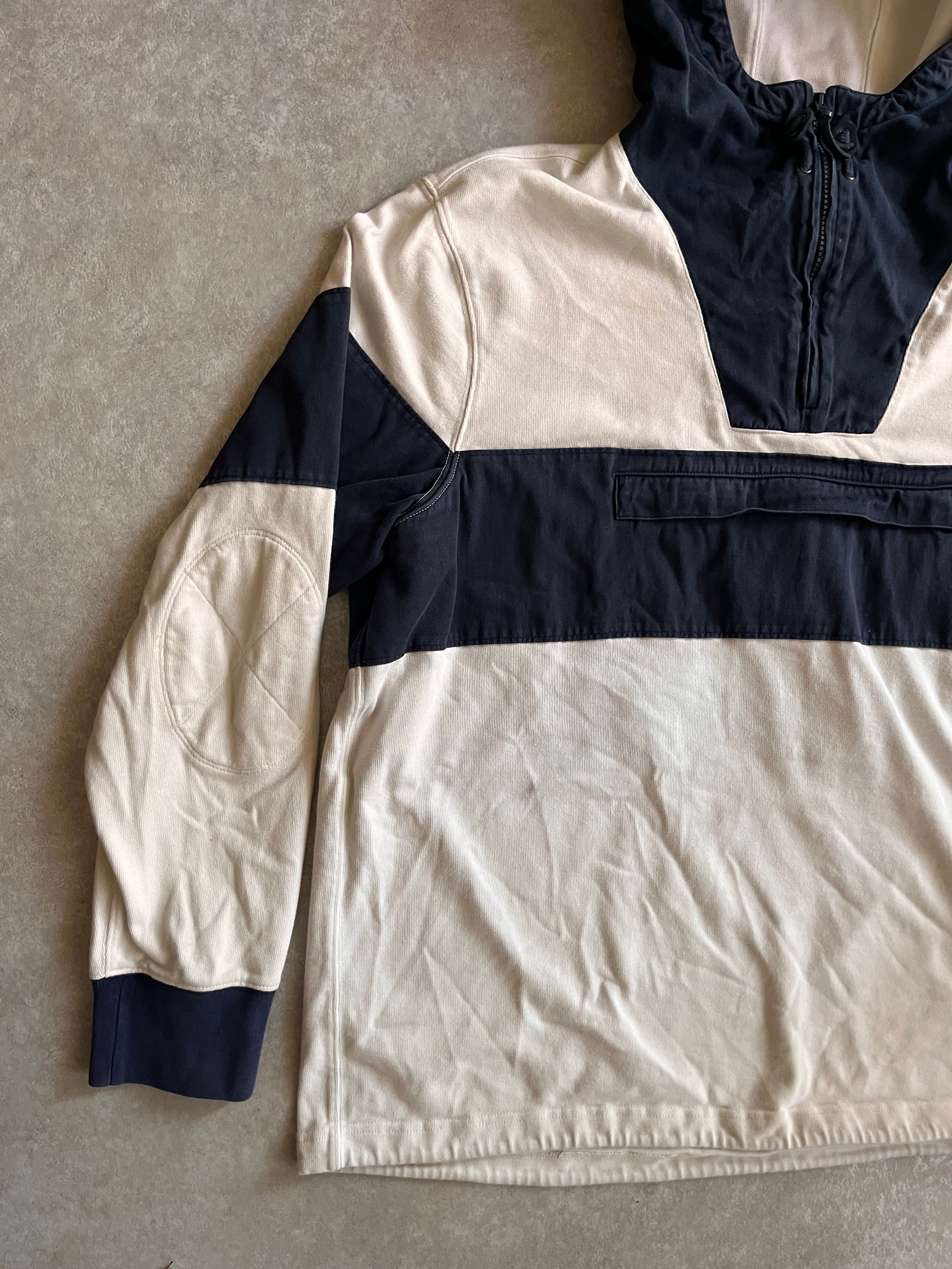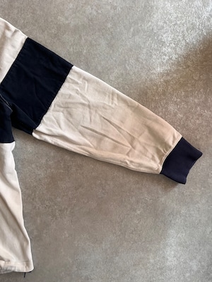 生地感やエルボパッチ、カラーリングからラガーシャツとアノラックパーカーが合体したようなディティールとなっています。