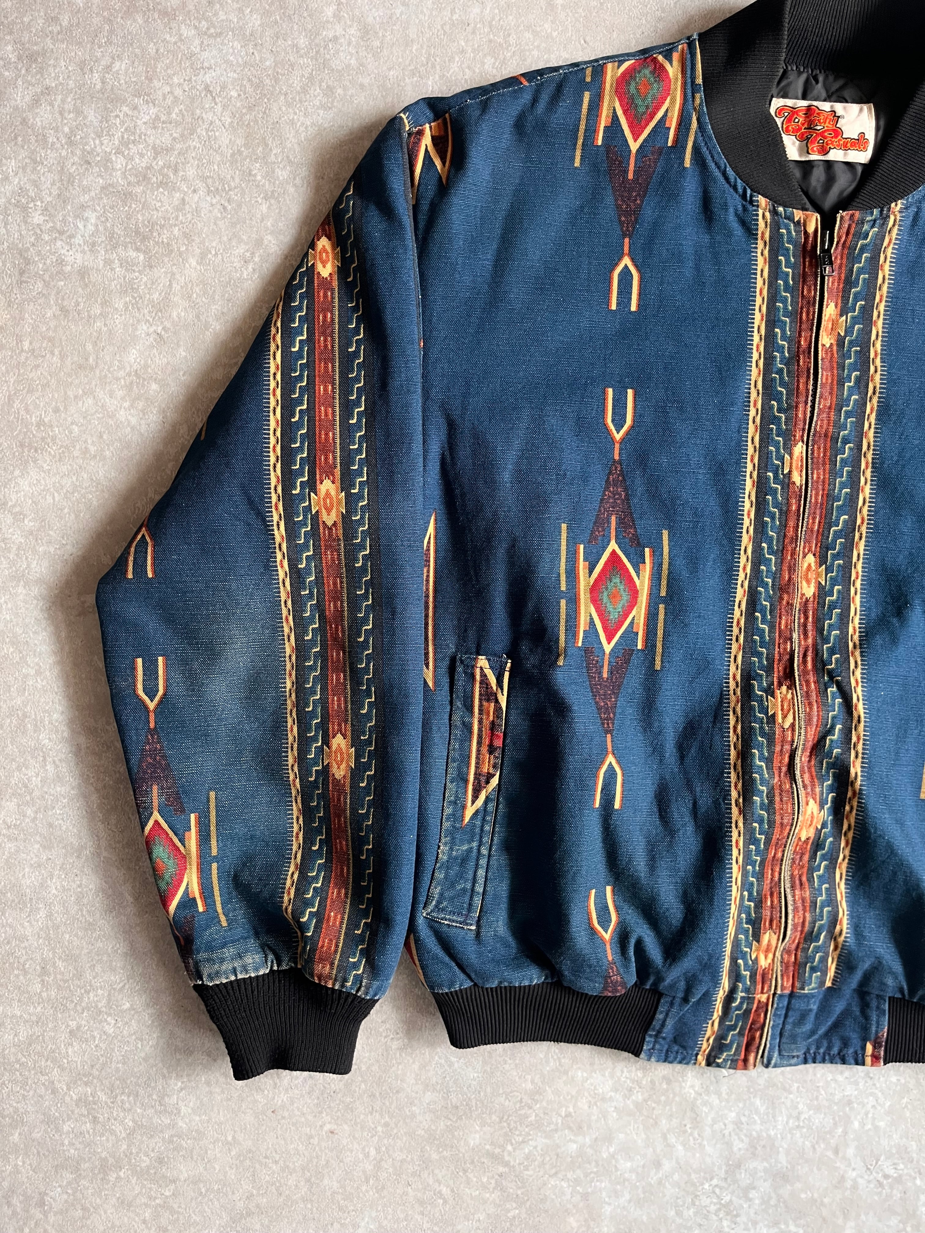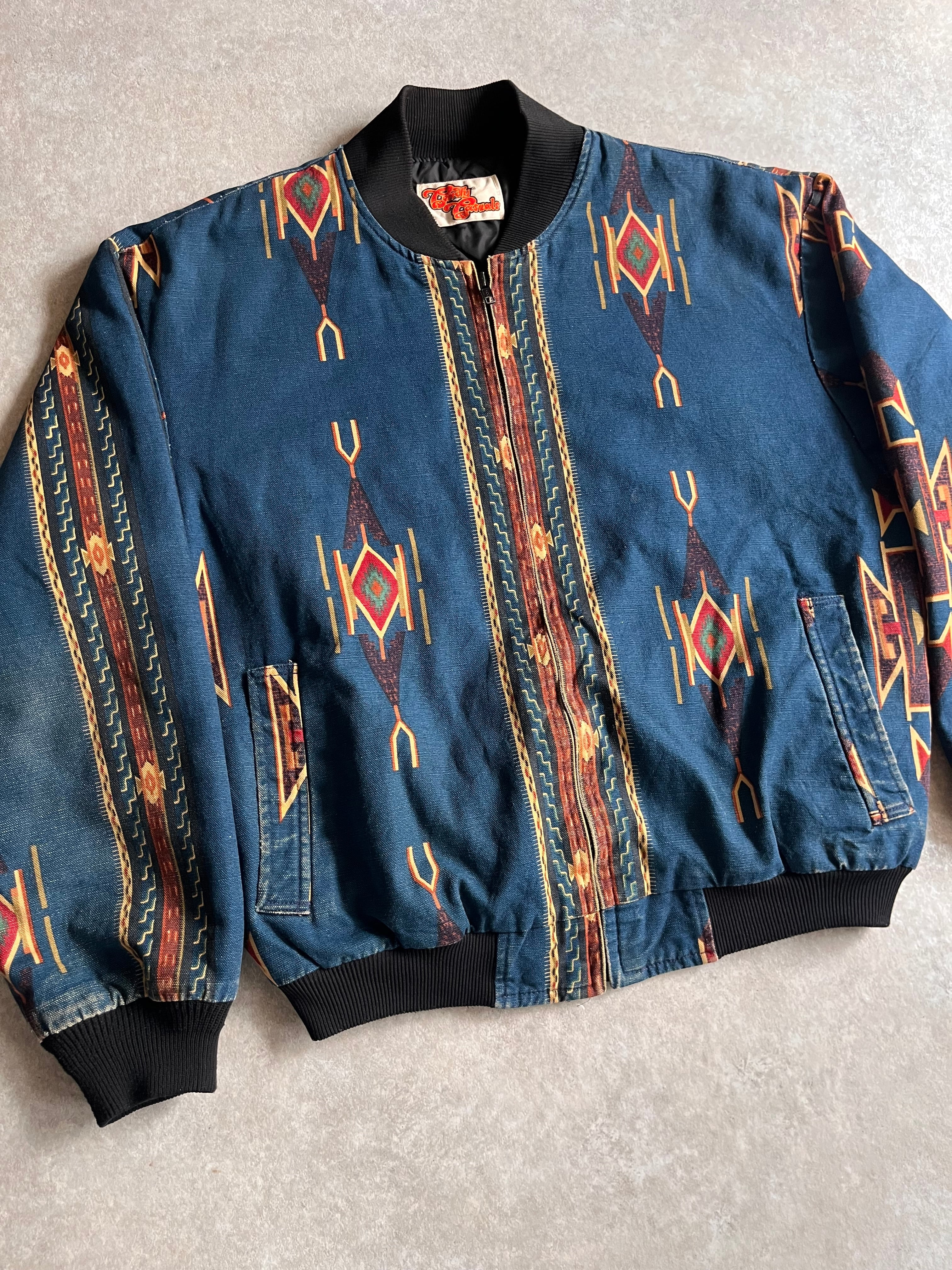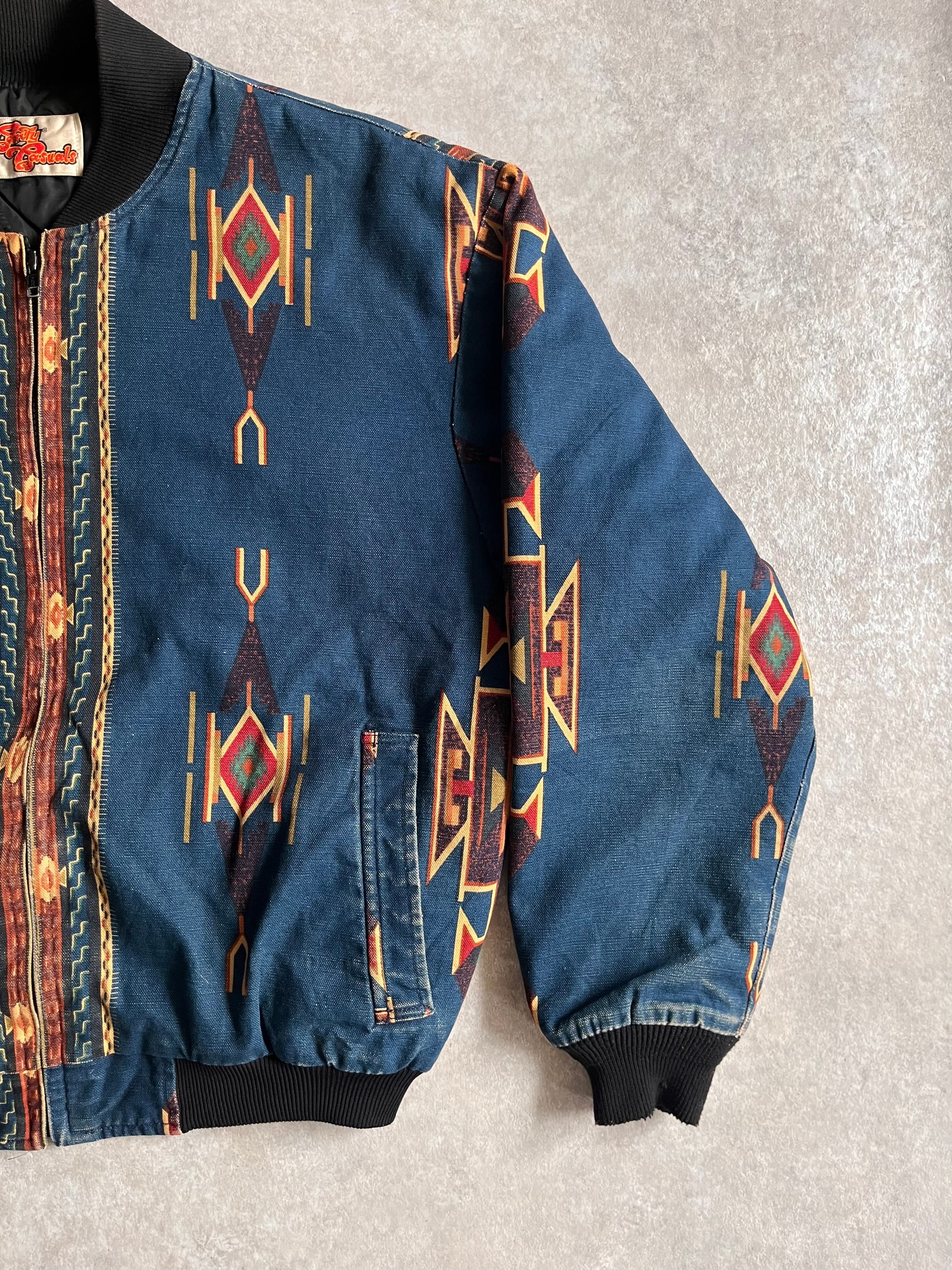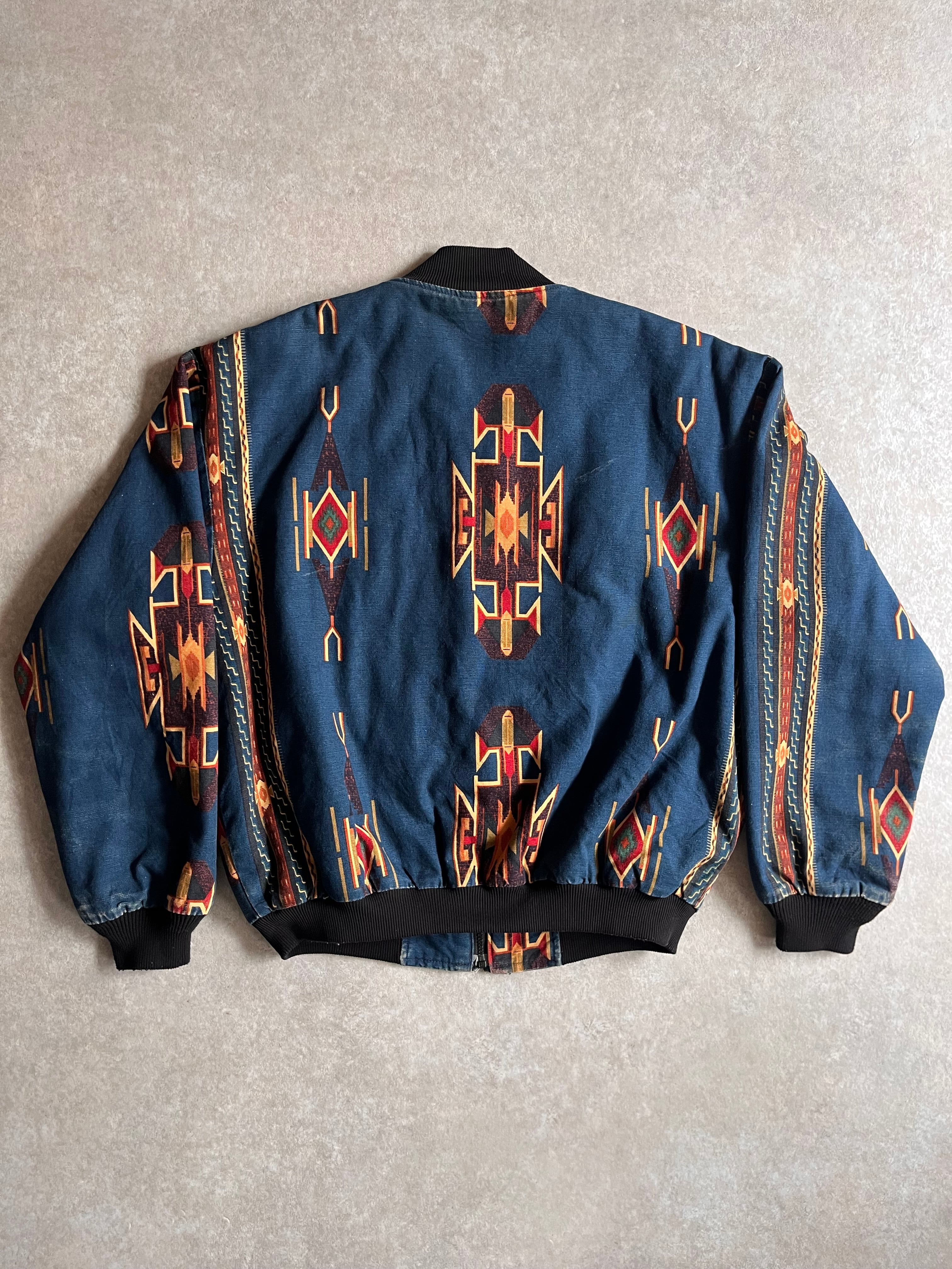 1980~90s Comfy Aztec Print Bomber Jacket L位 Made in USA G703