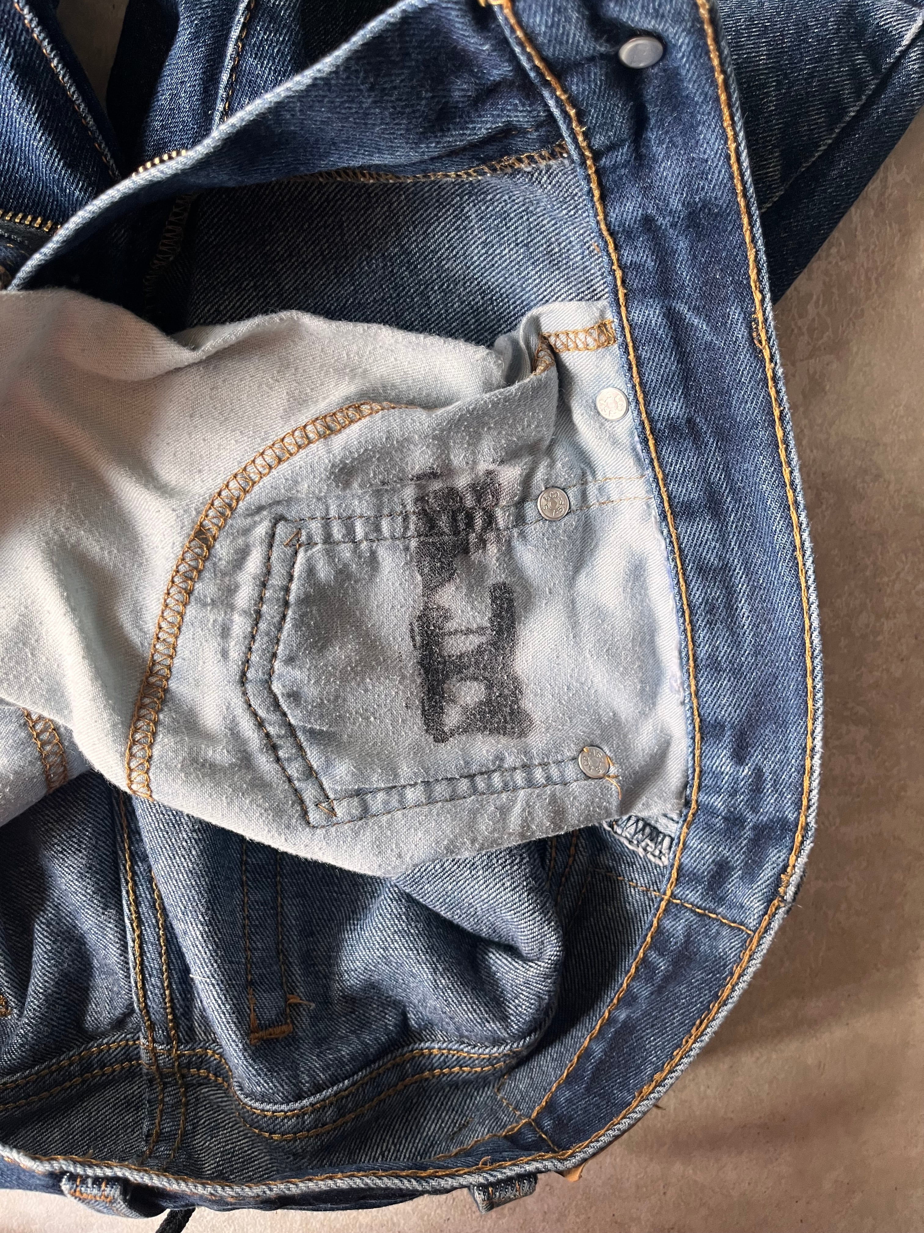 色落ち、ペンキ汚れ、裾ダメージあり